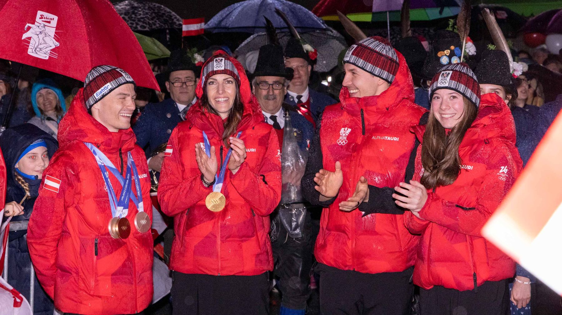 Nach der offiziellen Lotterien Medaillenfeier in Innsbruck wurden die Olympiateilnehmer:innen aus Rum am Dienstagabend auch in ihrer Heimatgemeinde empfangen.