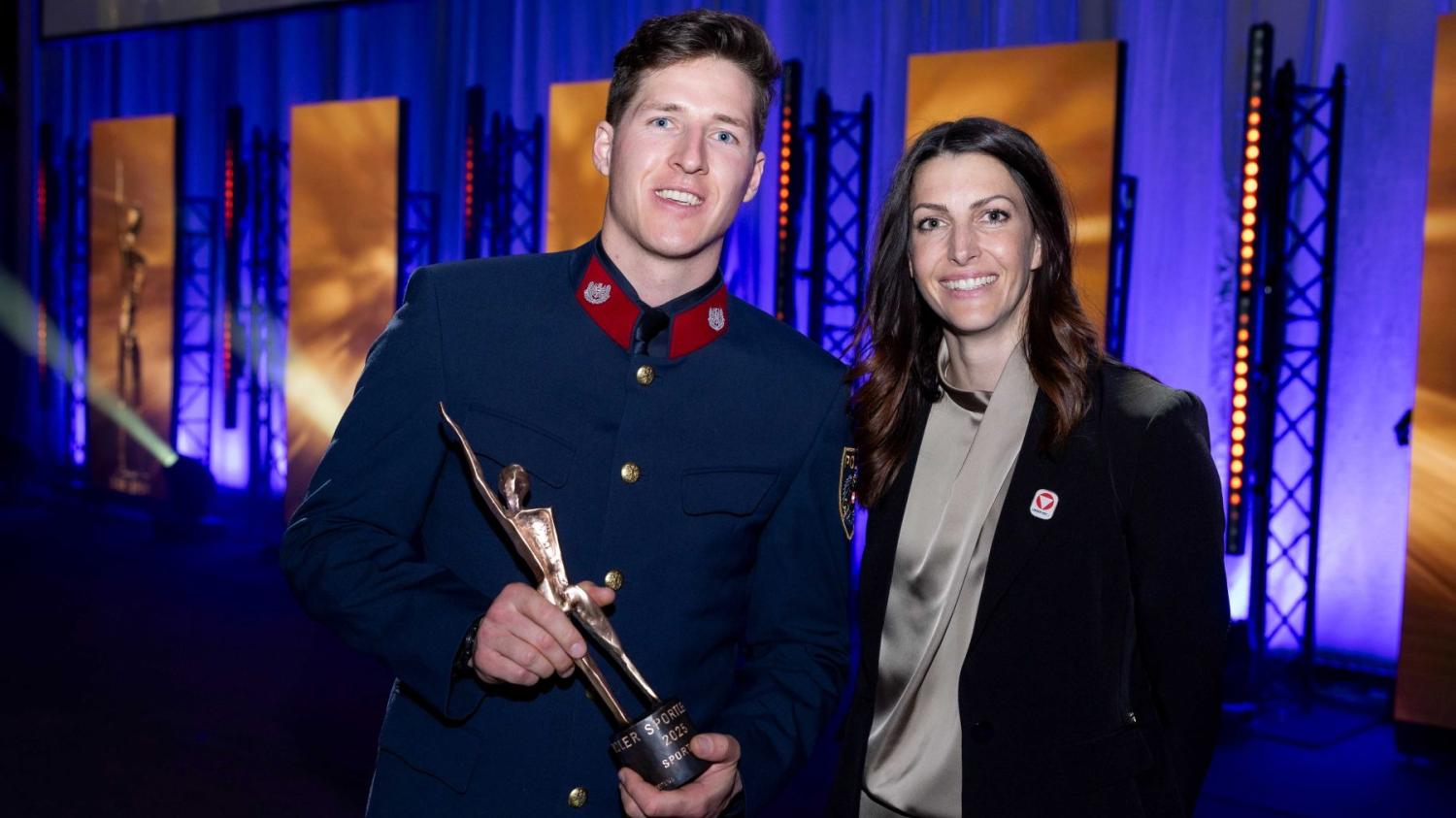 Ein besonderer Moment des Abends war für Janine Flock die Übergabe des "Viktor" an Raphael Haaser. Die Skeleton-Olympiasiegerin durfte die Auszeichnung an den Weltmeister persönlich überreichen.