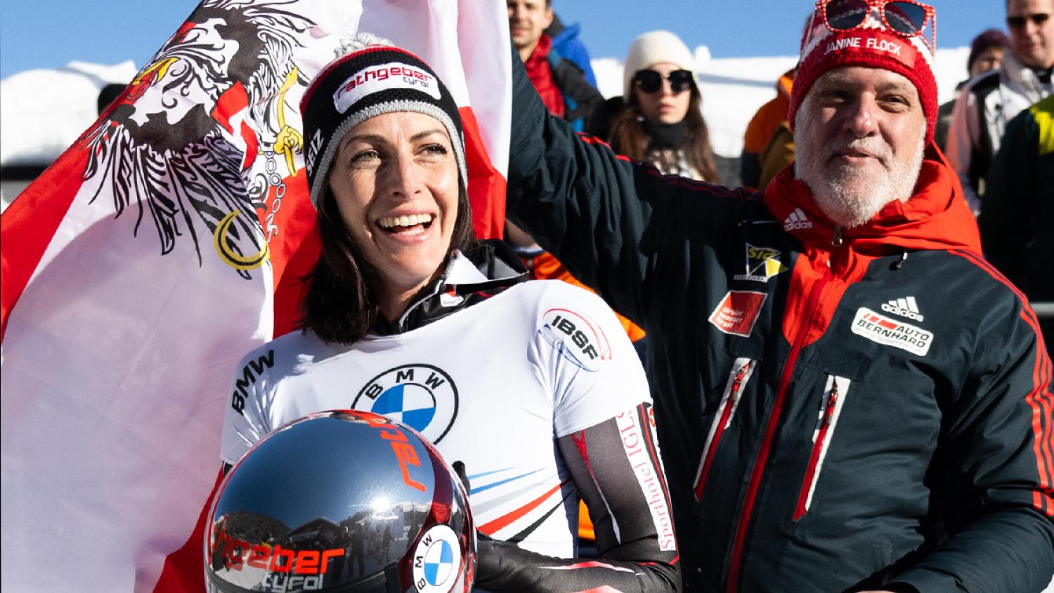„Meine Eltern haben meinen Hunderter genauso gescheit gefeiert, wie damals meinen ersten Sieg. Da waren sie auch dabei“, erzählt Janine Flock, die am Freitag bei ihrem 100. Weltcup-Start auf der Schweizer Natureisbahn Platz 7 belegte.