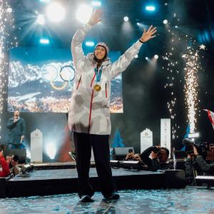 Der Landestheater-Vorplatz in Innsbruck wurde am Montagabend zur großen Bühne für Österreichs erfolgreiches Olympic Team Austria. Mittendrin: Olympiasiegerin Janine Flock.