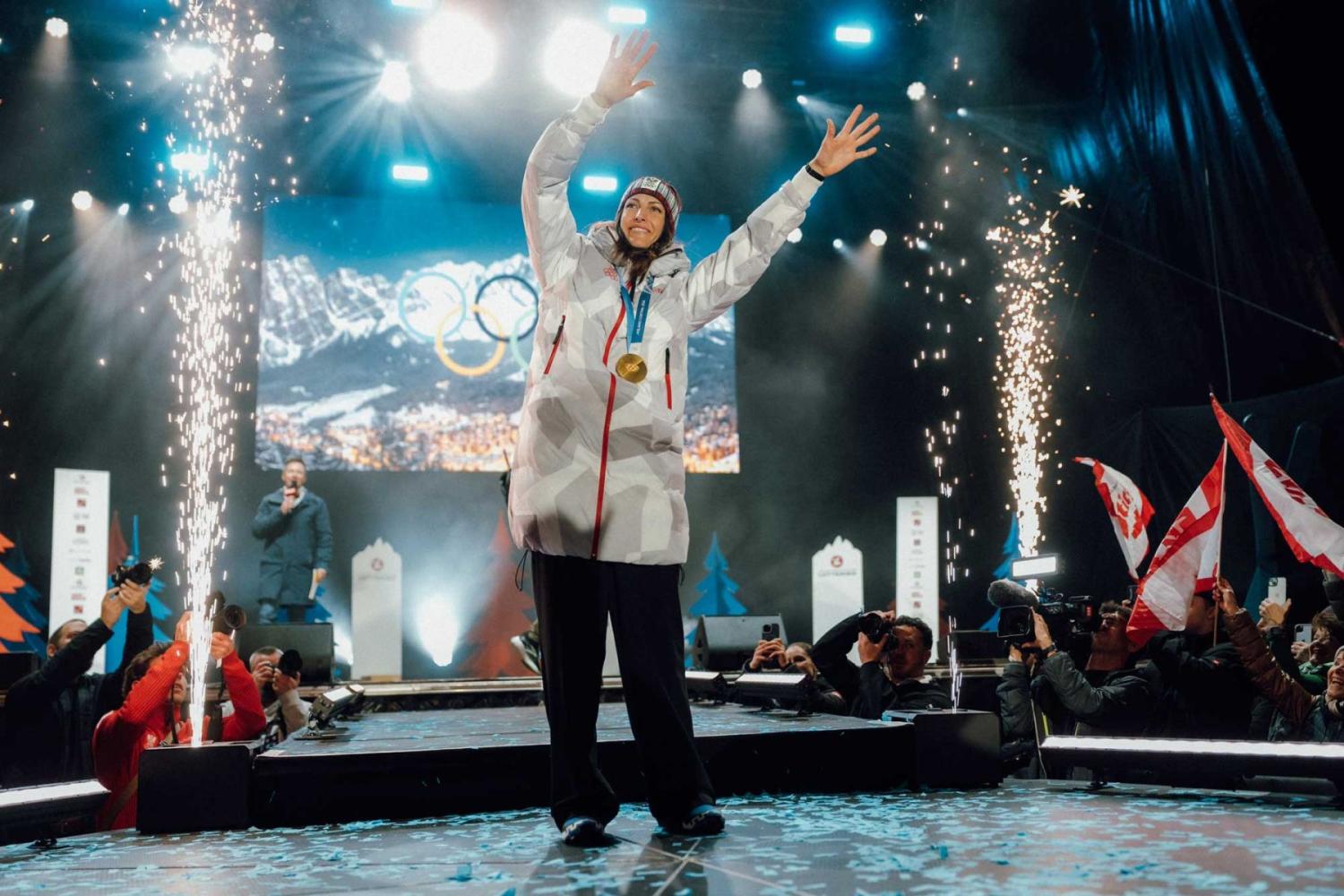 Der Abend der Medaillenfeier stand auch im Zeichen eines besonderen Jubiläums: 50 Jahre Olympische Winterspiele 1976 in Innsbruck. Die zweimalige Olympiastadt schlug damit eine emotionale Brücke zwischen Vergangenheit und Gegenwart. In einer Videobotschaft gratulierte IOC-Präsidentin Kirsty Coventry und erinnerte an das Erbe der Tiroler Olympiageschichte.